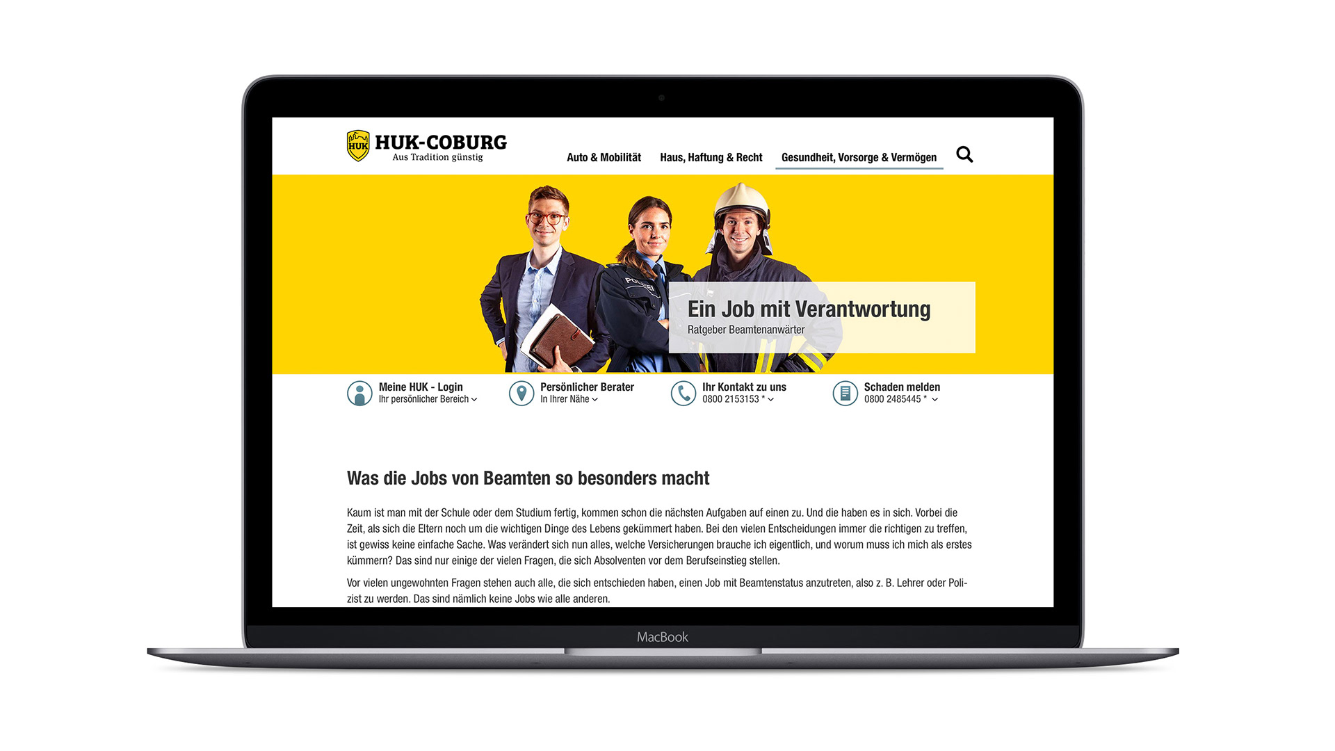 In den Filmen werden exemplarisch unterschiedliche Berufe vorgestellt, in denen authentische Beamte über ihre Tätigkeit und die vielen Vorteile, die ihr Beruf mit sich bringt, berichten. Die Filme dienen jungen Menschen als Informationsgeber und als Anregung, sich für einen besonderen Beruf zu entscheiden, der durch die HUK-COBURG eine umfassende Absicherung beinhaltet. Die Kampagne wird Online fortgesetzt, um die Zielgruppe an den entsprechenden Touchpoints abzuholen.