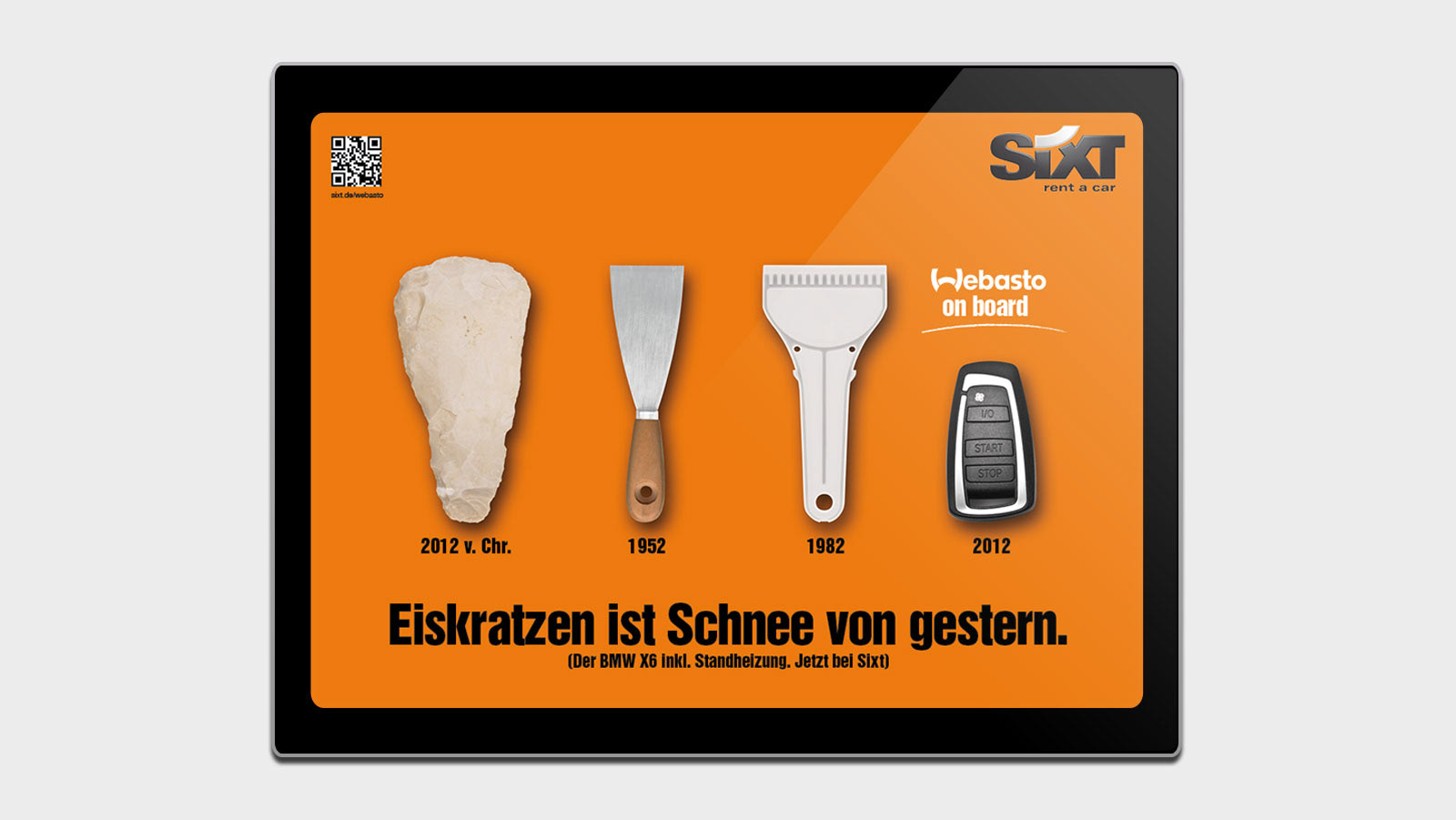 Bei Sixt sind verschiedene Modelle von Audi und BMW mit einer Webasto Standheizung ausgestattet. Um auf dieses Angebot hinzuweisen, entwickelt LL eine Kommunikationskampagne. Neben Anzeigen, einem Viral-Film und Kommunikation auf der Homepage werden auch die Sixt-Stationen mit aufmerksamkeitsstarken POS-Materialien ausgestattet. Dazu gehören unter anderem Info-Screens und Floor-Communication. Auch in den jeweiligen Autos wird die Kampagne fortgesetzt, indem der Autoschlüssel und die Belüftungsanlage als Komminikationsfläche genutzt werden.
